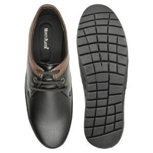 Designed for all-day wear, these Derby shoes combine a smart look with enhanced comfort. The smooth upper is complemented by subtle detailing around the collar, adding a touch of contrast and style. The lace-up design ensures a secure and adjustable fit, while the cushioned interior supports long hours of use. Built with a sturdy, grip-focused outsole, this pair offers better traction and stability for everyday movement. Ideal for work and casual settings, it delivers a balance of comfort, durability, and style.
